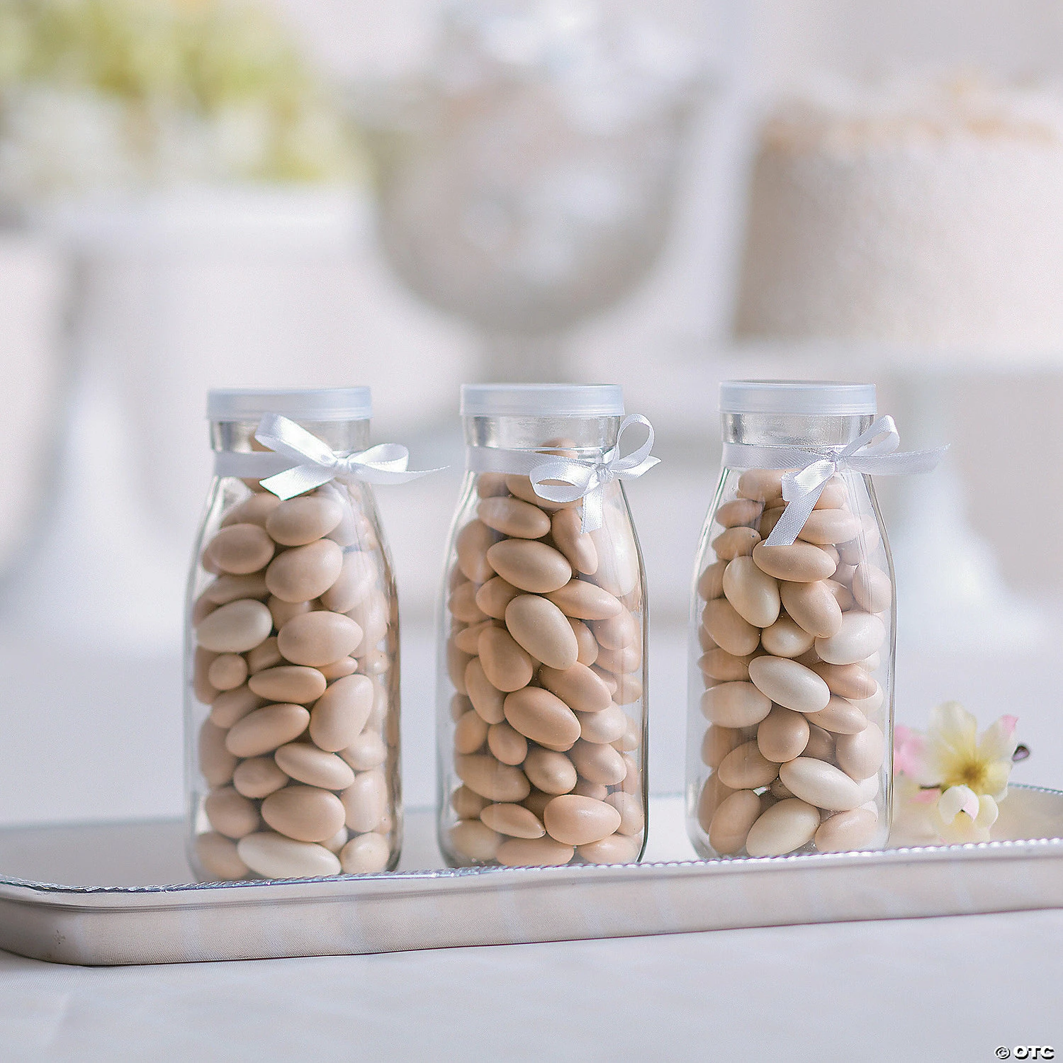 โข Perfect for Events: A classic design and tight-fitting plastic lids make these clear glass milk bottles great as decorative touches. Fill with flowers or wedding favor candy to give to guests. โข What’s Included: The set includes 12 of these 5 1/2″ clear glass milk bottles with secure plastic lids. โข Great for Decorating: Paint your own design or stencil on the glass bottles or leave as-is and decorate with bows and flowers.โข Versatile Party and DIY Supply: Get creative and use the bottles for a milk and cookies party, decorate and use as take-home favors, use as rustic vases and more. Product Description: Fill these classic clear glass milk bottles with simple flowers, wrap a pretty bow around the neck, and use to decorate the tables at your country or rustic cottage wedding reception. Or create your own milk and cookies night with flair. The creative options are endless with this set of a dozen clear glass milk bottles with lids. Specs:Size: 5 1/2″ x 2″ diam.Quantity: 12Material: Glass, Plastic