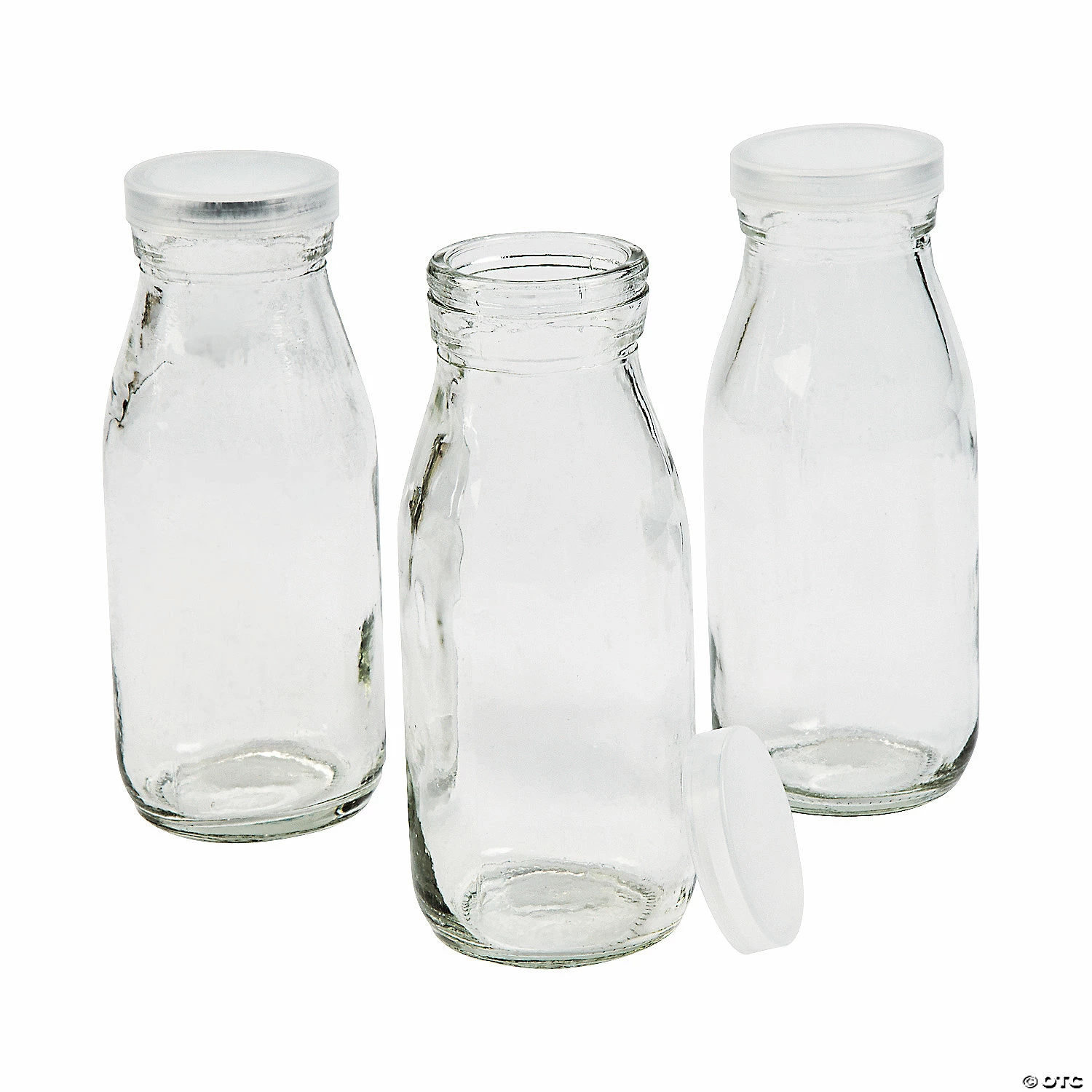 Hot Sale ๐ Clear Glass Milk Bottles with Lids – 12 Pc. ๐