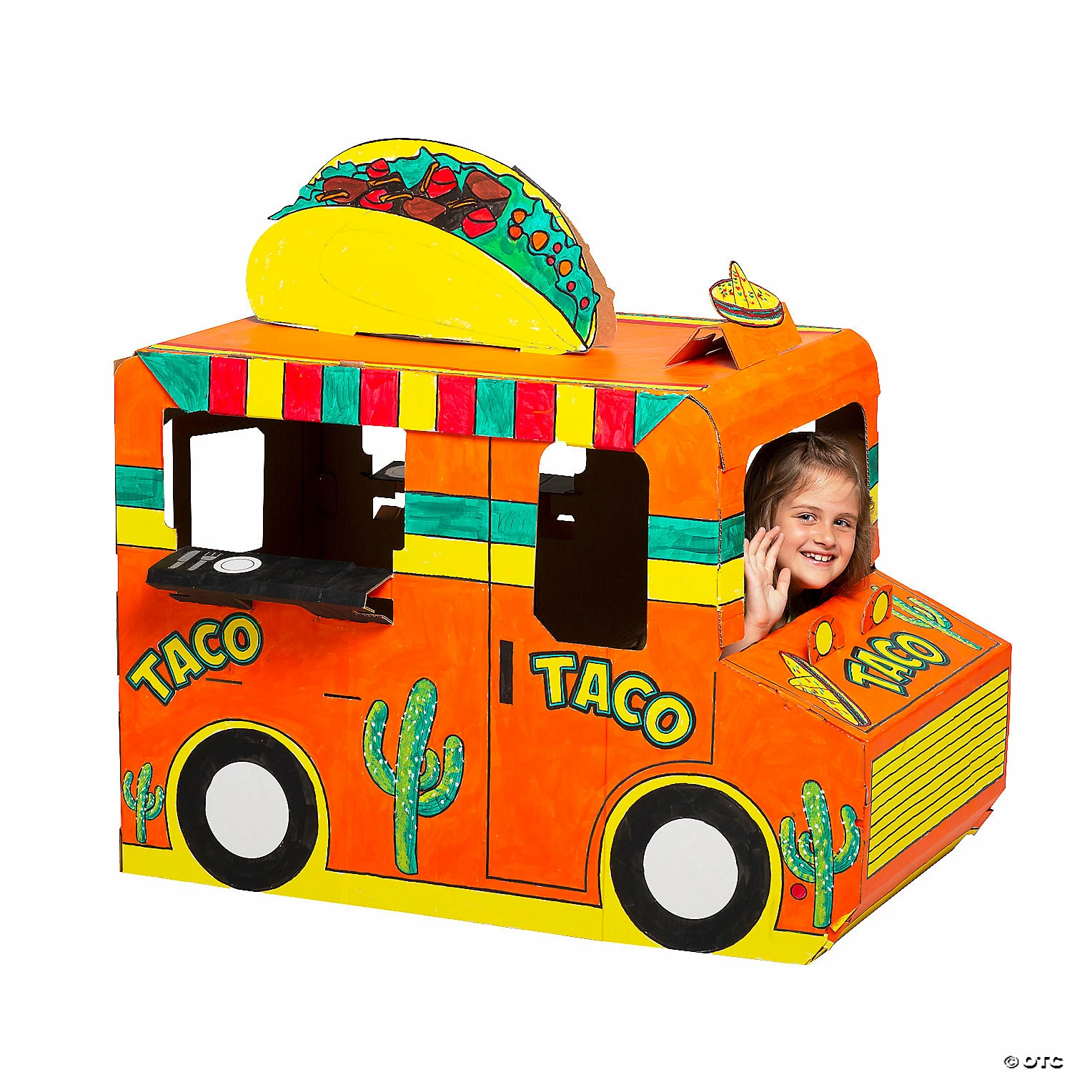 โข IMPROVE FOCUS & CONCENTRATION โ How many times did your parents tell you to stay within the lines? Coloring encourages spatial awareness and helps kids focus on boundaries and lines. This color your own playhouse project will also improve their concentration.โข HAVE A BLAST! โ When it comes to creating art, the possibilities for fun are endless! Kids will have a blast coloring in their new taco truck, and itโs a simple activity that can be finished in stages. Color in all the designs or leave a few strategically blank for a fun look!โข SPARK IMAGINATION & PROMOTE SELF-EXPRESSION โ Give your little artists wings with this fun DIY playhouse project. Let kids choose their colors and watch their creativity take flight as you discuss entrepreneurship and organic produce!Product Description:Taco ’bout a fun imaginative play experience! If your little one has a creative streak and a fun imagination, they’ll absolutely love this play-pretend Taco Truck playhouse. Using their own markers and craft embellishments, sold separately on this site, they’ll be able to turn this craft for kids into a fun playtime experience! Size: 42″ x 24″ x 29″ Quantity: 1Material: Cardboardยฉ OTCSpecial Shipping Information: This item ships separately from other items in your order. This item cannot ship to a P.O. Box. This item may be subject to additional processing days. ITEM IS NOT ELIGIBLE FOR EXPEDITED SHIPPING