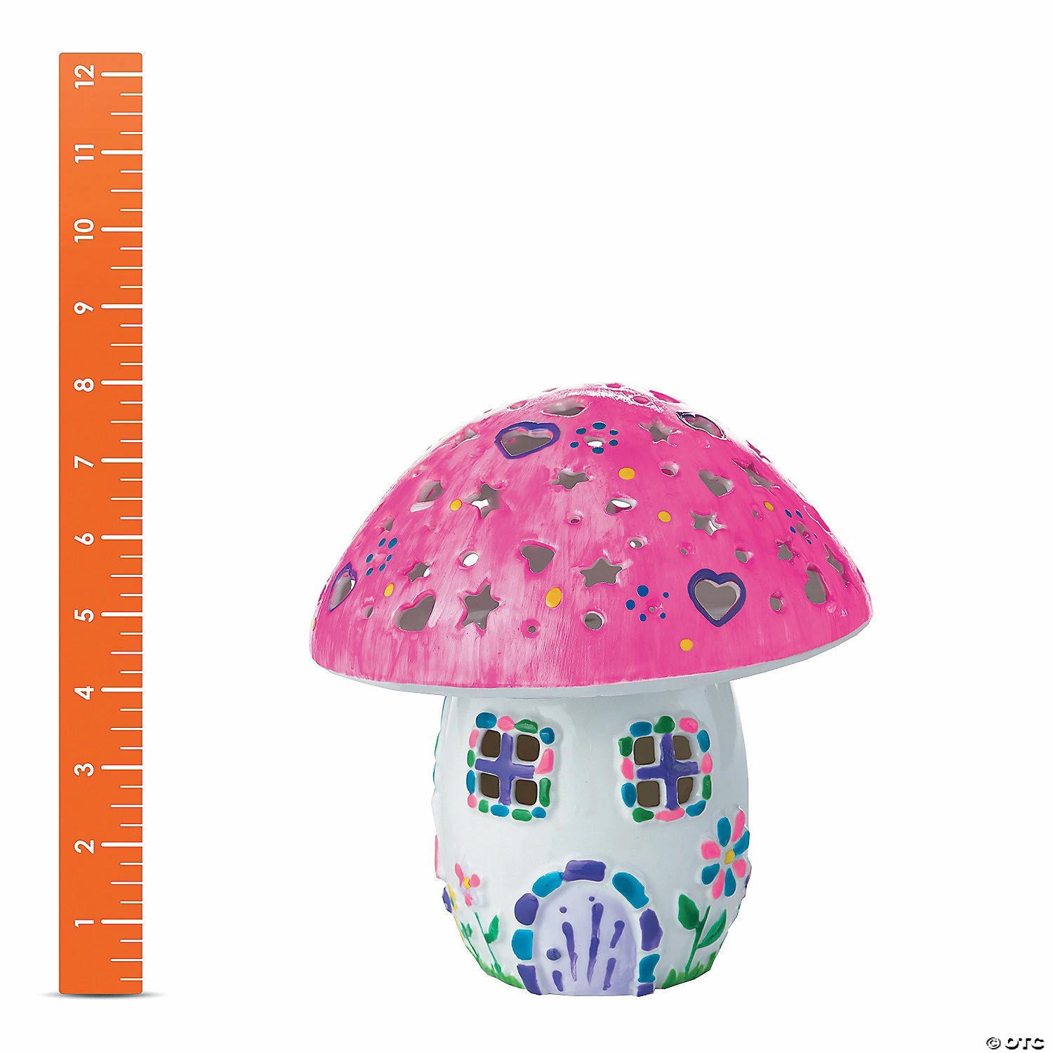 Through the simple craft of painting, you can transform a pretty, porcelain mushroom into a whimsical fairy home! Just paint and oven-bake your beautiful fairy tale cottage, and with the click of a button, sweet tea lights will cast an enchanting glow, welcoming fairies to come and stay. Hand paint a magical, porcelain fairy house accent light—perfect for illuminating a bedroom nook or other special spot.• Hand paint a magical, porcelain fairy accent light. • Promotes creativity, self-expression, imagination and fine motor skills. • Includes a porcelain fairy house, 2 battery-operated tea lights, 12 paints, 2 paintbrushes and an instruction guide.